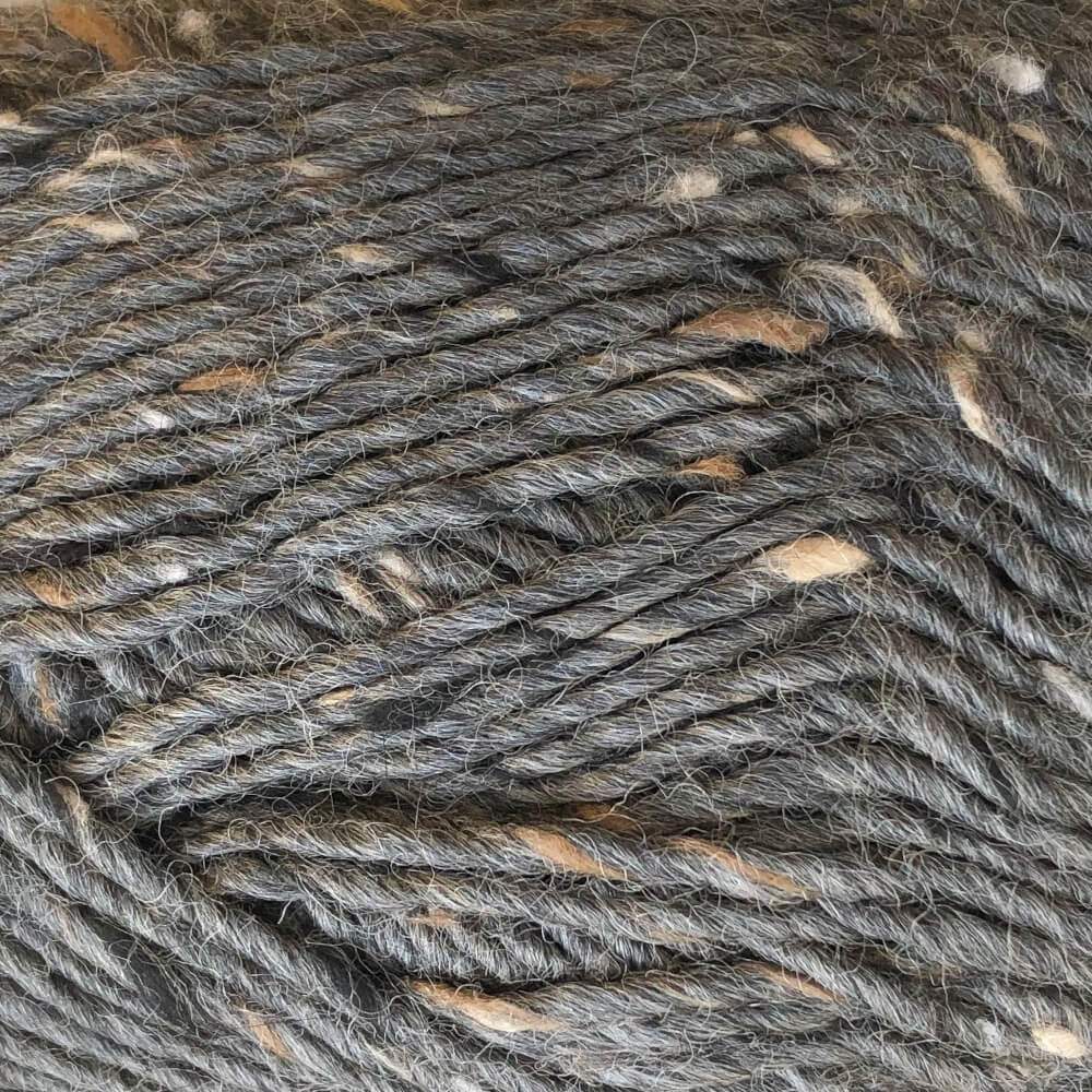 Realizzato con 40% di lama, 40% pura lana vergine e 20% viscosa, questo filato combina leggerezza, resistenza e un'eccellente capacità isolante grazie alla struttura cava delle fibre di lama. La viscosa, un materiale naturale ricavato dalla cellulosa, dona una lucentezza setosa e una particolare morbidezza. Sono proprio le pagliuzze di viscosa in tonalità naturali – come avorio, beige, marrone e nero – a conferire il caratteristico effetto tweed.