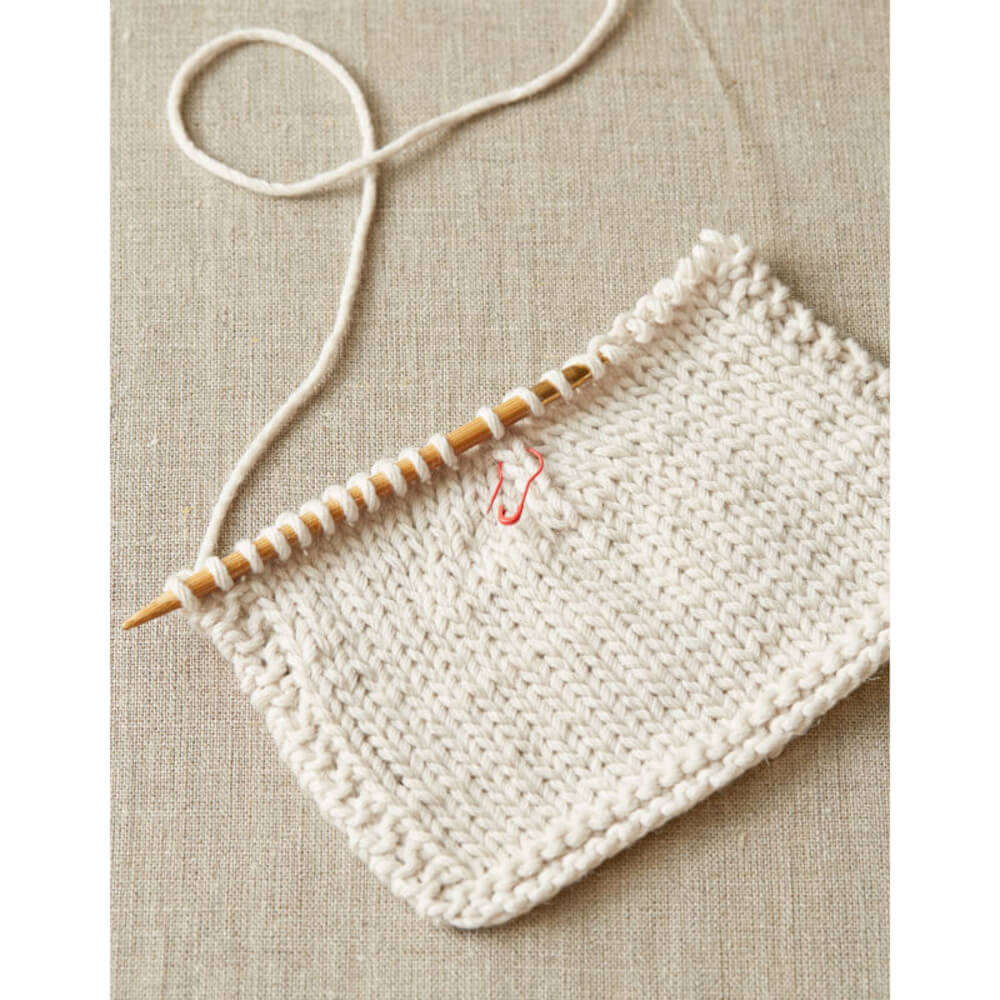 Si noti che i marcapunti sono verniciati e non rivestiti in nylon, per mantenerli sottili e evitare che lascino tracce o "scale" nel lavoro a maglia. Con l'uso prolungato, la vernice potrebbe iniziare a usurarsi, conferendo ai marcatori un aspetto rustico, ma la vernice rimarrà sufficiente per distinguere facilmente ciascun colore.