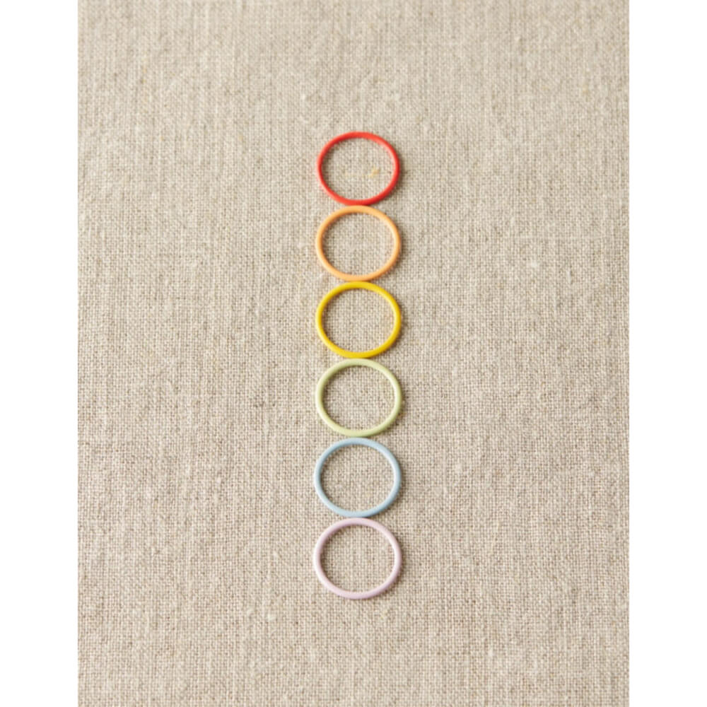 I Colorful Ring Stitch Markers di Cocoknits sono l’accessorio perfetto per chi desidera tenere traccia in modo ordinato e funzionale delle parti più importanti del proprio lavoro a maglia: l’inizio del giro, aumenti, diminuzioni o cambi di motivo. Questi marcapunti, realizzati in acciaio rivestito in nylon, sono lisci, resistenti e pensati per non perdersi nei soliti angoli remoti (come tra i cuscini del divano o sul fondo della borsa!).