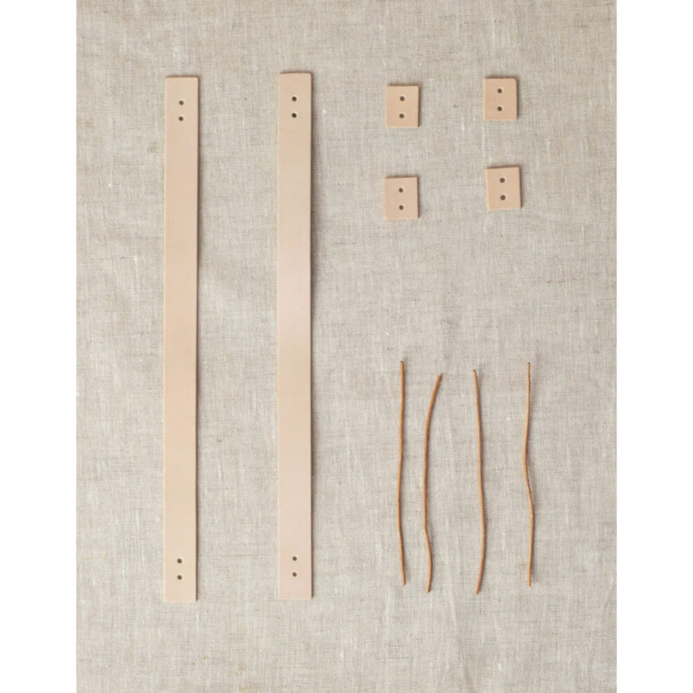 Il Leather Handle Kit - Short di Cocoknits è la versione compatta del celebre kit originale: manici più larghi e più corti, perfetti per borse fatte a mano e pensati per adattarsi anche al Kraft Caddy (venduto separatamente). È la soluzione ideale per aggiungere manici in pelle a qualsiasi borsa in tessuto o lavorata a maglia, senza cuciture né accessori.