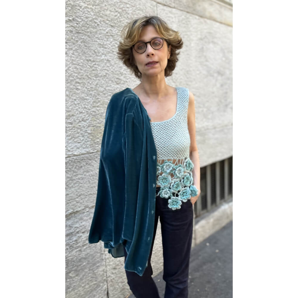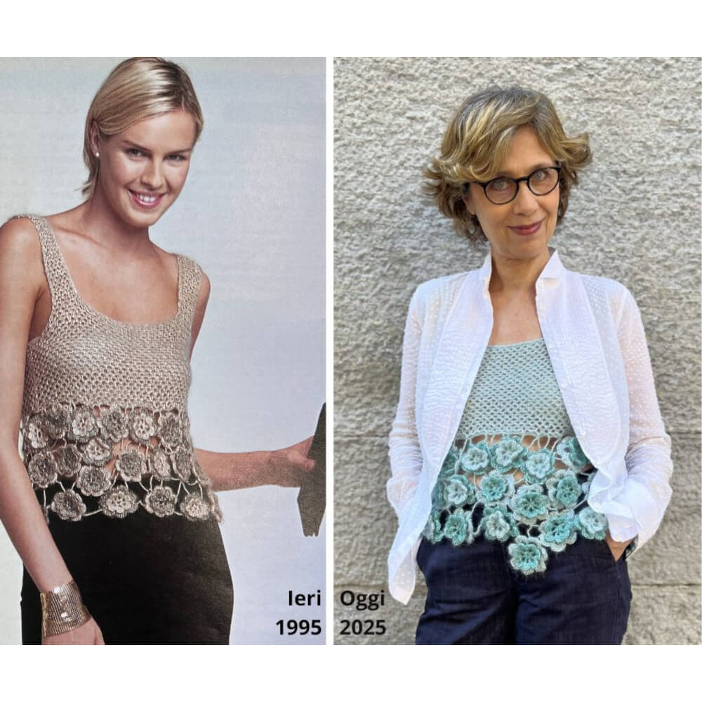 Nel 1995 Giuliano e Giusy Marelli hanno pubblicato per la prima volta questa canotta con baschina e rose d’Irlanda, un capo che ha attraversato il tempo, conservando intatto il suo fascino delicato. Oggi, a 30 anni di distanza, abbiamo reinterpretato lo stesso modello con uno sguardo contemporaneo.