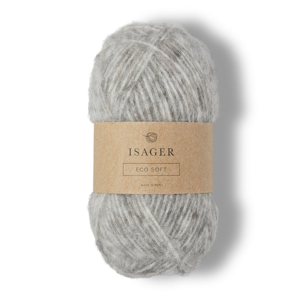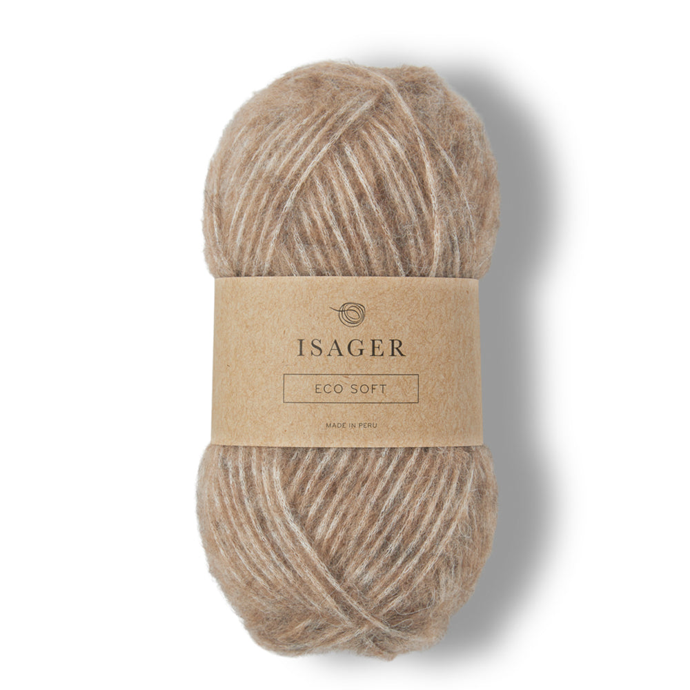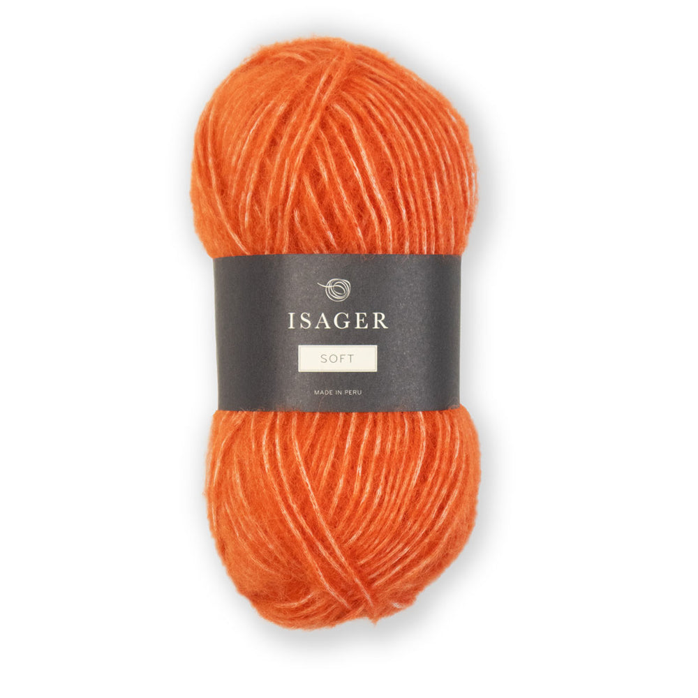 Isager Soft è un filato morbido e voluminoso, composto da 56% Baby Alpaca e 44% Cotone Pima Biologico. Con una metratura di 125 m per 50 g, si lavora singolarmente con ferri da 5.5 – 6 mm, offrendo una texture soffice e leggermente pelosa.
