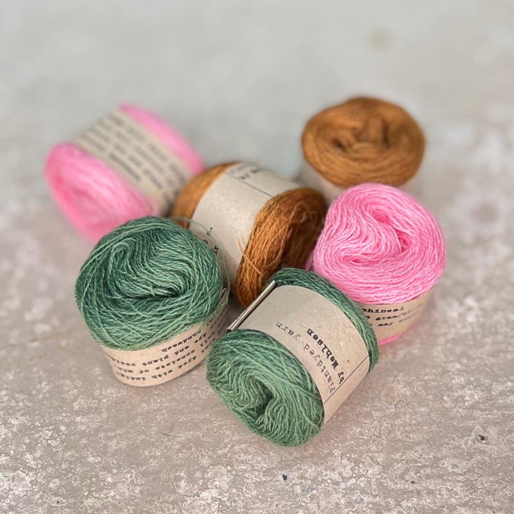 Mette Mehlsen tinge i suoi filati con le piante che raccoglie a mano in natura nei luoghi in cui vive, nella parte occidentale dello Jutland in Danimarca, e integra le piante raccolte con cocciniglia, gramigna e indaco. La sua passione per la tintura con le piante è nata dopo aver lavorato con tessuti del 1800, tinti con le piante.
