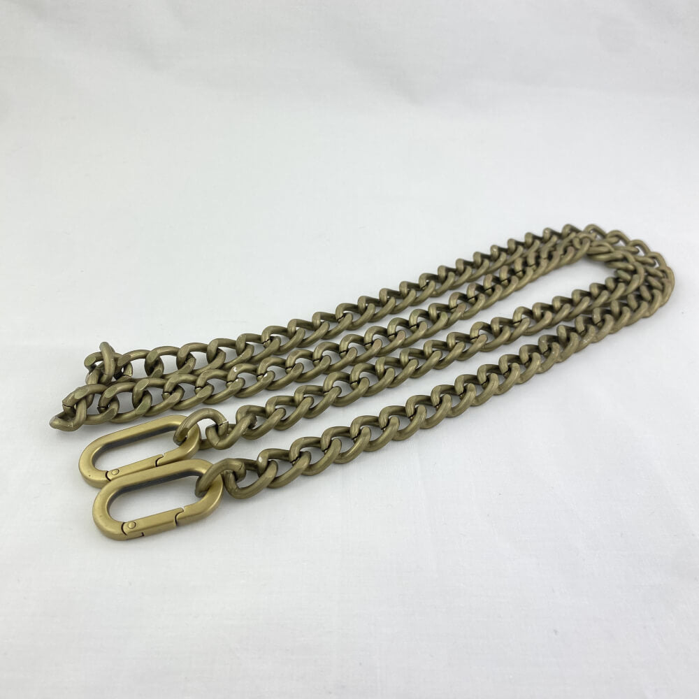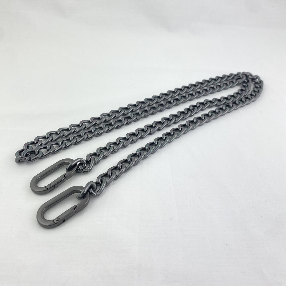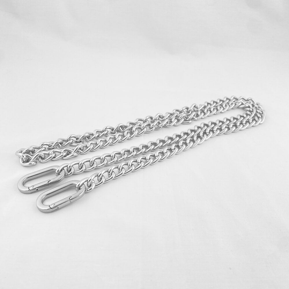 Catena per borse in metallo con maglia apribile e moschettoni.
