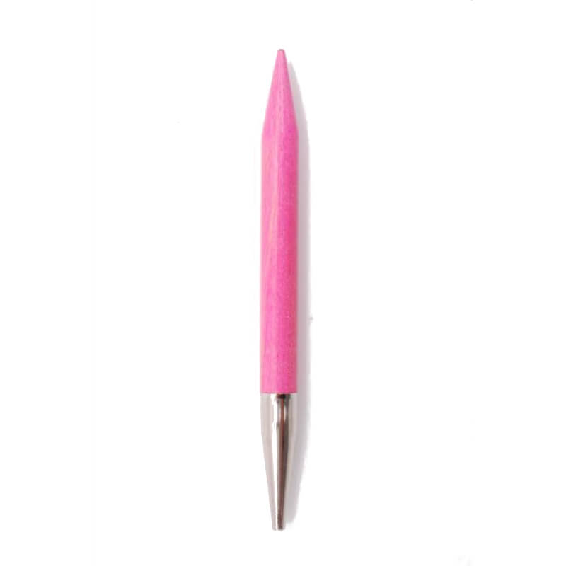 Le punte intercambiabili Blush di Lykke sono realizzate in legno di betulla naturale con una finitura rosa fucsia, offrendo una superficie liscia e una presa confortevole. Queste punte sono progettate per adattarsi ai cavi intercambiabili Lykke, permettendo di personalizzare la lunghezza del ferro circolare in base alle esigenze del tuo progetto.