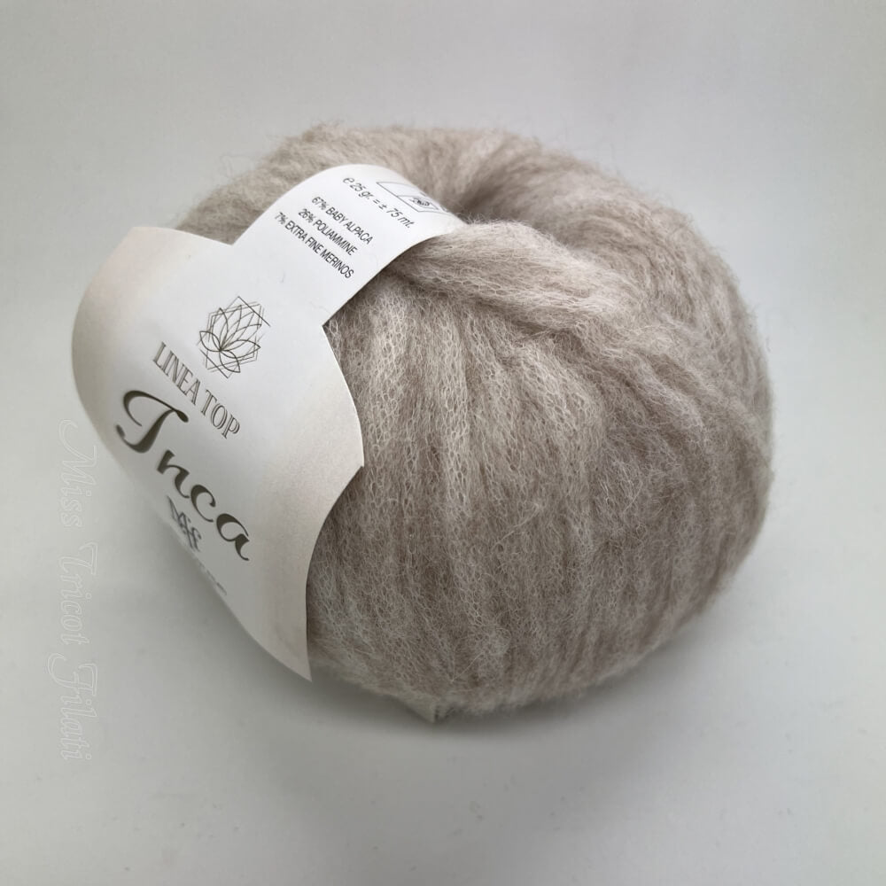 Inca di Miss Tricot Filati è un filato pregiato realizzato in morbidissima baby alpaca, ideale per creare capi caldi ed eleganti. La sua texture soffice e la composizione di alta qualità lo rendono perfetto per progetti che richiedono comfort e raffinatezza.