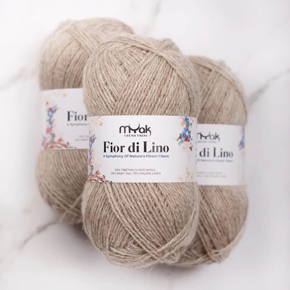 Fior di Lino è una miscela straordinaria che unisce la freschezza del lino italiano, la morbidezza impalpabile del baby yak e la ricchezza della lana tibetana. Questo filato di spessore fingering, composto con 15% lino italiano, 35% baby yak e 50% Tibetan Cloud, intreccia l’essenza dei paesaggi italiani, la quiete sconfinata dell’altopiano tibetano e la bellezza eterna delle fibre naturali più pregiate.