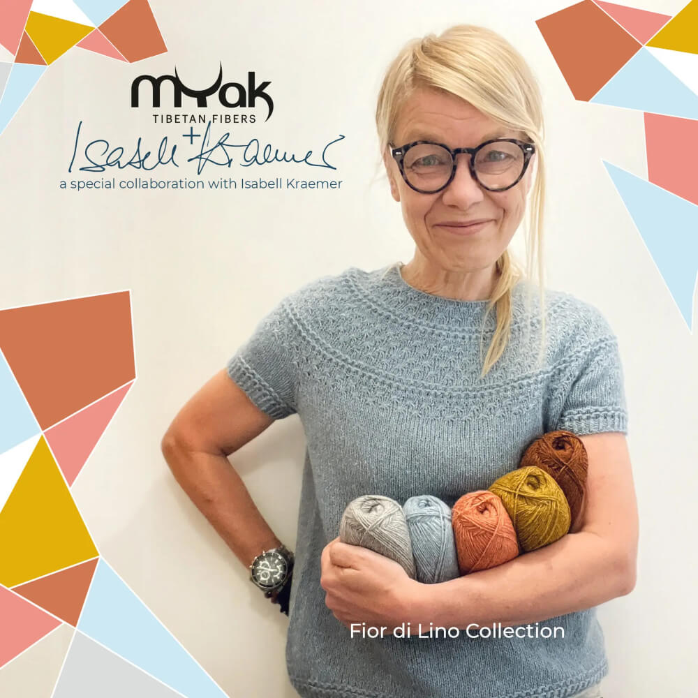 Sapere quanto siano importanti per mYak le condizioni di lavoro eque e sicure, insieme al loro grande amore e rispetto per l'ambiente, rende Fior di Lino un filato che posso consigliare con tutto il cuore di una knitter… e mi sento davvero onorata che mYak mi abbia invitata a contribuire alla palette di colori di questo splendido filato!"