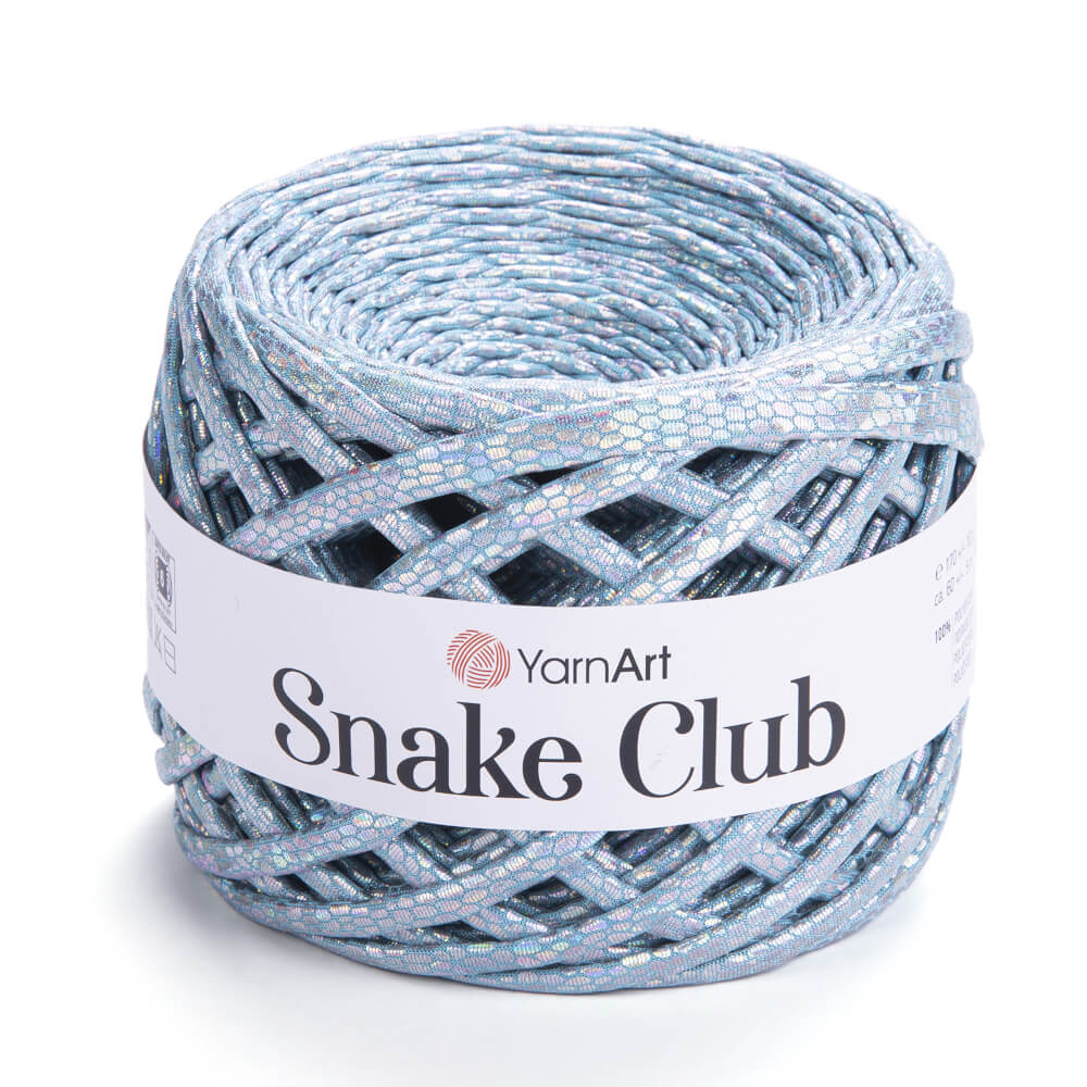Snake Club di YarnArt è un filato super bulky in 100% poliestere, con una texture lucida che ricorda l’effetto della pelle di serpente. Morbida ma compatta, questa fettuccia è ideale per creare borse e accessori fashion dal look moderno e deciso.